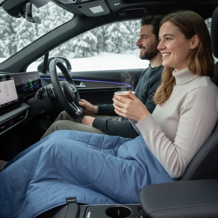 提案: エアコンを控えめにし、このAURORA™ ブランケットを膝に掛けるだけで、宇宙グレードの断熱層が表面温度を逃さず閉じ込めます。シートヒーターとの併用で、暖房電力を最小限に抑え、冬のドライブの航続距離を延ばす「エネルギーマネジメント」としてのブランケットです。
