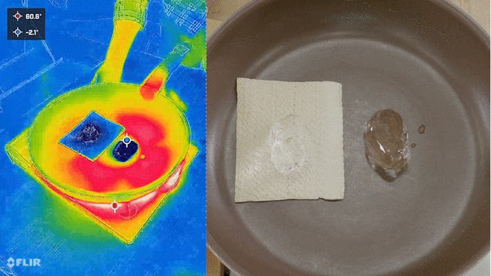 フライパンの熱すらも断熱して氷を溶かしません。