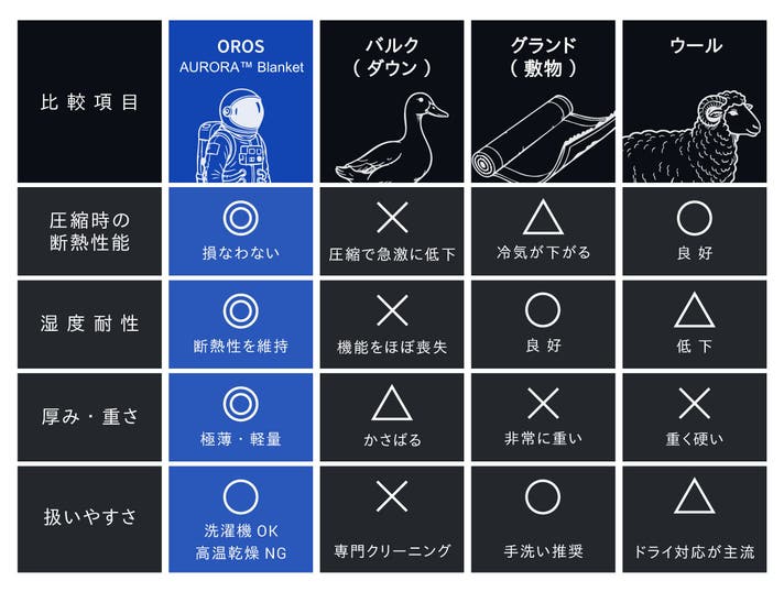 OROS AURORA™ Insulated ブランケットは、