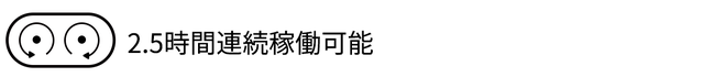 2000mAhの長持ちバッテリーが内蔵されており、一回のフル充電で2.5時間連続稼働可能です。