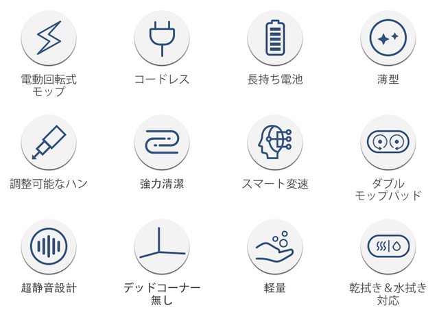 手動のフロアモップでは、屈む必要があり、ゴシゴシ擦らないと汚れが落ちない場合がよくあります。また、拭き掃除をする時、商品が重い、準備が大変、コードが絡まる、狭い隙間に入られないなどの悩みもたくさんあります。