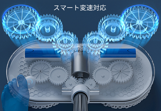 - 可変速トランスミッションで力を入れずに、手を添えるだけで拭き掃除できます