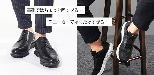 えり付きシャツやジャケットにパンツを合わせたスマートカジュアルスタイルで、足元が革靴ではちょっと固すぎるという場面…