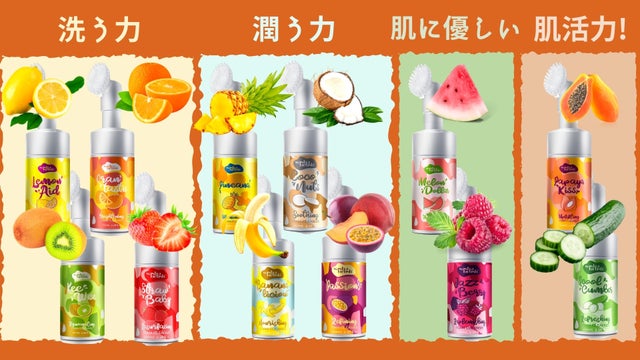 色んな果実の香りのついた、ブラシで洗う泡洗顔?いいえ、それだけではありません。洗うだけで天然果実を始めとした成分を、お肌に「補う」ところが新しい泡コスメです