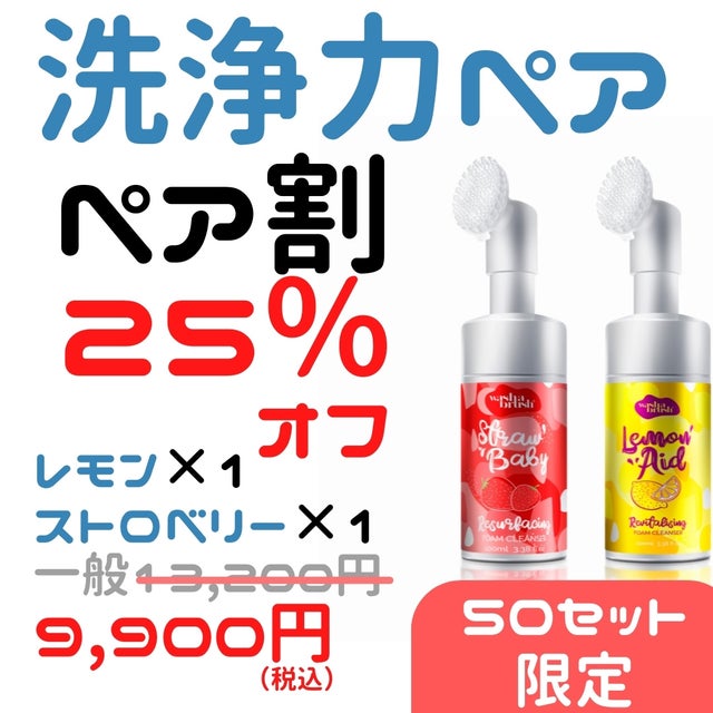 がっつり洗いたいあなたは、洗浄力が自慢のペア(ストロベリー&レモン)限定50セットがおすすめ