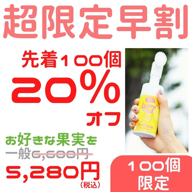 先着100個限定にて、お好きな果実が選べる20%オフの超早割