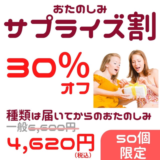 もうとにかくおまかせ!というあなたに特別企画!何が届くかは到着してのおたのしみ♪のサプライズ割引は限定50個です