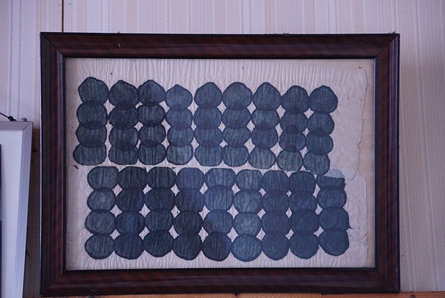 写真は藍の『手板』と呼ばれるものです。完成した蒅はこの手板にして色合いを検討します。手板の鑑定は正確で、これにより阿波藍の等級と価格が決まります。こうして蒅の出来具合が確認され、全国の染色所へ発送されて蒅づくりは終焉を迎えます。