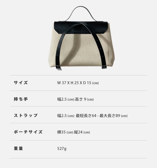 バッグ紐の形態に応じて、バッグパック・ショルダーバッグ・トートバッグに変えながら使えます。