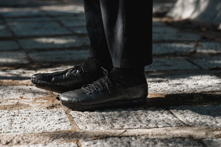前作になかった「靴ヒモ」要素を搭載し、よりフィット感を向上させたモデルを作成。さらにレザーを用いることでよりフォーマルな印象のスニーカーをご用意しました。それが今回の「awase form」です。