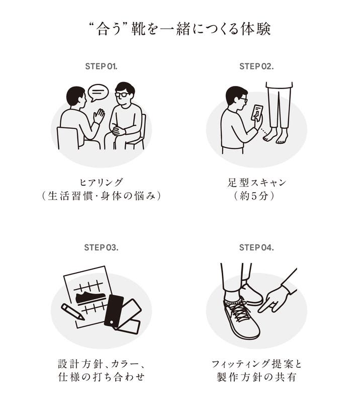 単なるサイズ測定ではなく、身体の使い方や好みに“合う”靴を一緒につくる体験として設計されています。