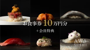 AWA SUSHIでのお食事に自由にご利用いただける、90,000円/270,000円分の食事券に加え、以下の特典が付くのは今だけ。
