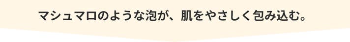 ふんわり優しいマシュマロ泡でなでるだけ。こすらなくても気持ちいい。肌をいたわる優しい洗いかたを、そっとお手伝いします。