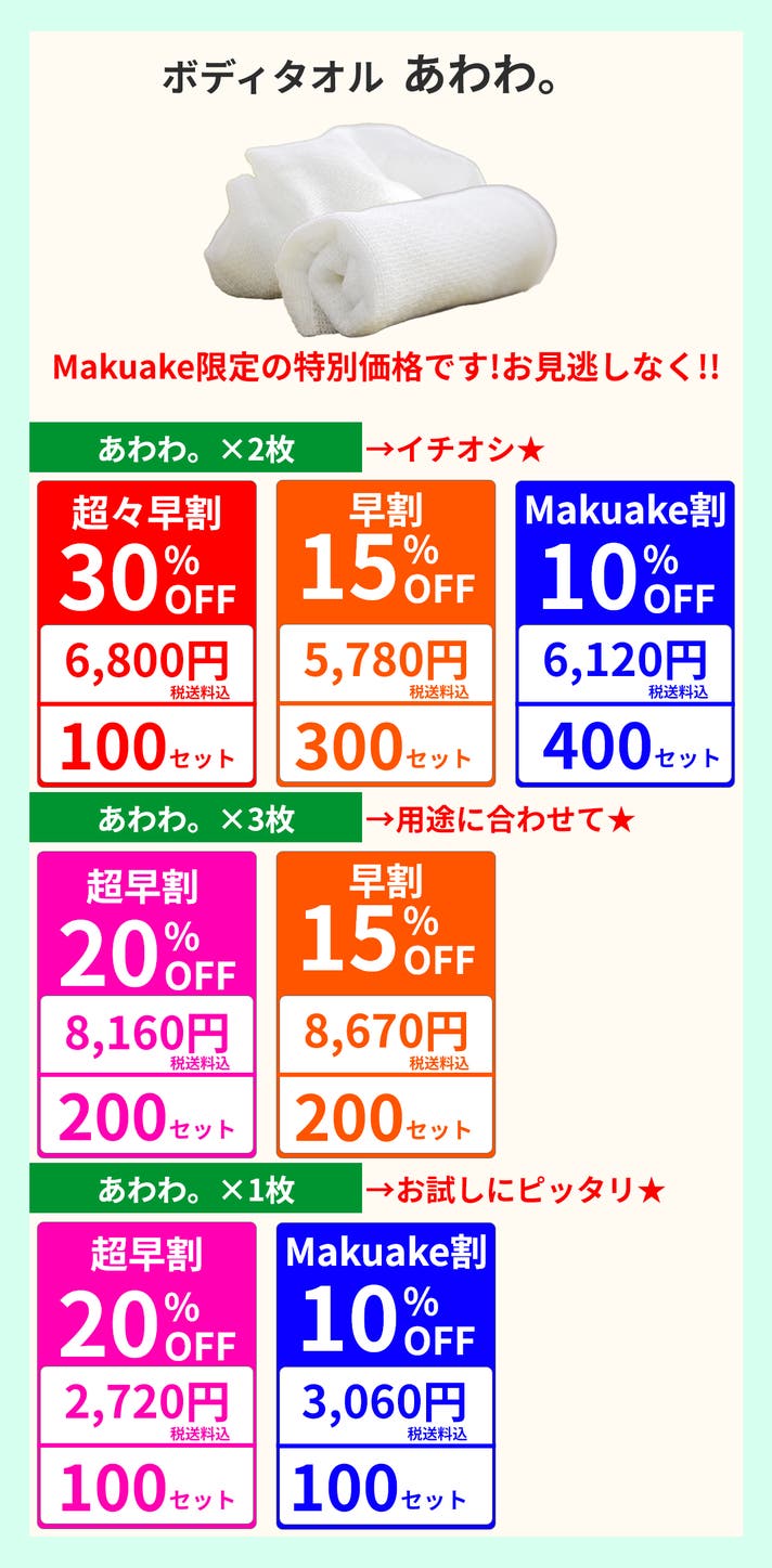 「Makuake(マクアケ)」は、実行者の想いを応援購入によって実現するアタラシイものやサービスのプラットフォームです。このページは、 プロダクトカテゴリの 「赤ちゃんもにっこり。肌へのやさしさを極めた極細繊維の高機能2WAYボディタオル」プロジェクト詳細ページです。