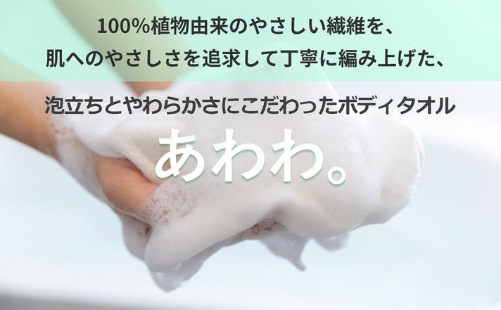 肌をこすらず、泡で包み込む。トウモロコシやサトウキビ由来の植物由来の化学繊維「ポリ乳酸」で編まれた、やさしい泡立ちのボディタオル──