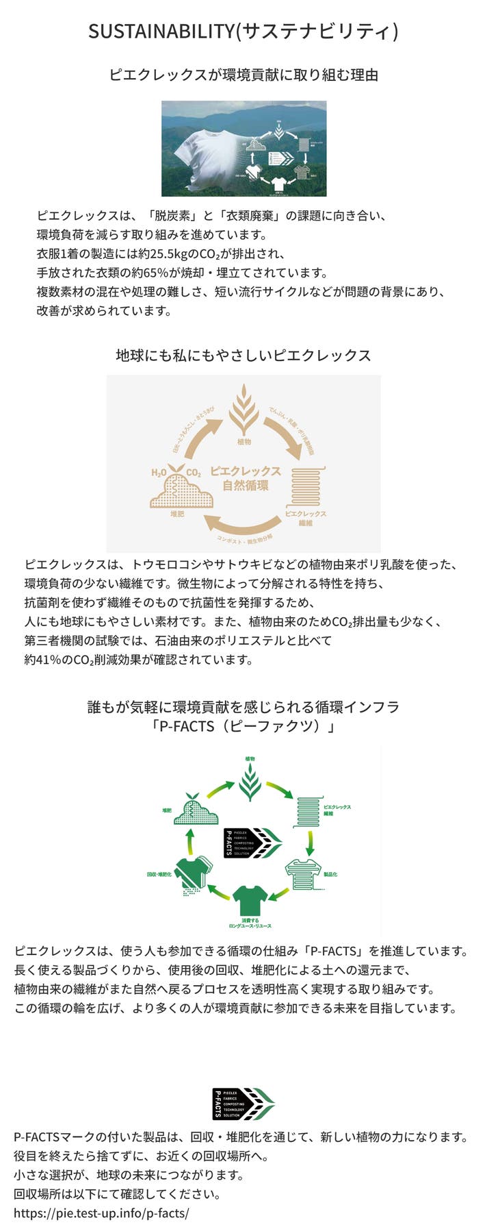 植物由来のポリ乳酸(PLA)は、環境に負荷をかけにくいサステナブルな繊維です。毎日の中でできる小さな選択から、地球にやさしい未来を一緒につくっていきませんか。