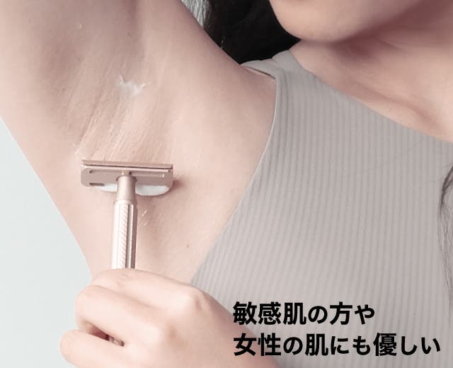 A: もちろんです。刃の露出を髪の毛1本分まで極限に抑えているため、脇や足などにも使用可能です。皮膚が薄い部位は、特に軽いタッチをすることで女性でもお使いいただけます。