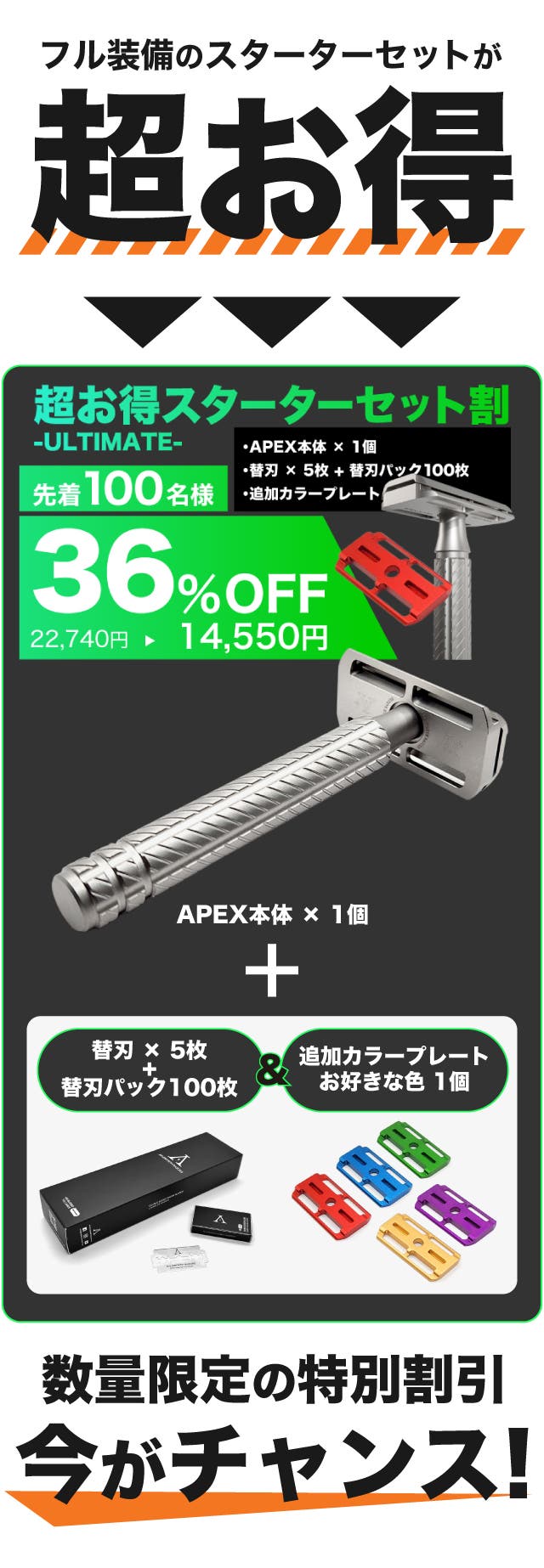 【超お得スターターセット割 -ULTIMATE- 36%OFF】14,550円 x 先着100名様|APEX本体+替刃105枚+追加カラープレート1枚のコンプリートセット