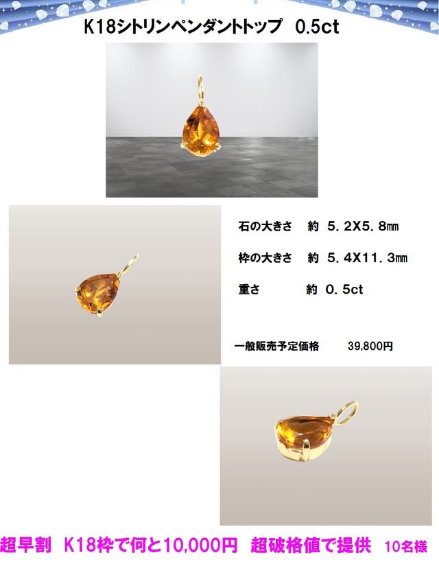 超早割 特別企画 超破格値で!K18シトリンペンダントトップ 0.5ct