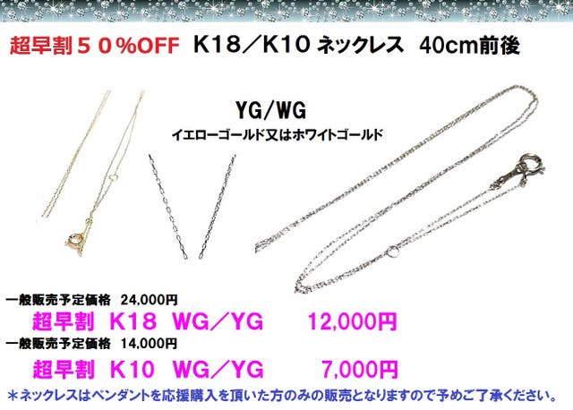 超早割 50%OFF K10ネックレス ホワイトゴールド又はイエローゴールド
