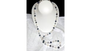 お洒落な 淡水パールロングネックレス 白・黒・グレー