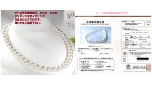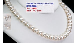 オーロラ花珠真珠ネックレス 9.0-9.5mm イヤリングまたはピアスセット付