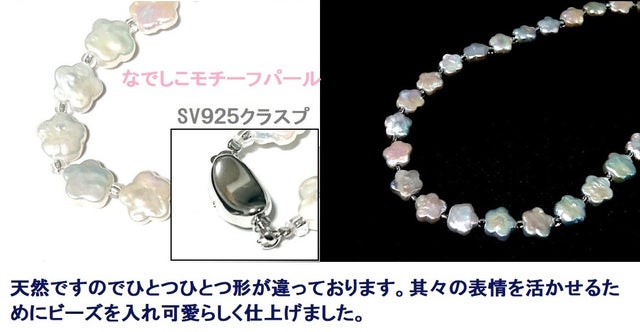 天然の非常に珍しいなでしこモチーフのパールネックレスです。