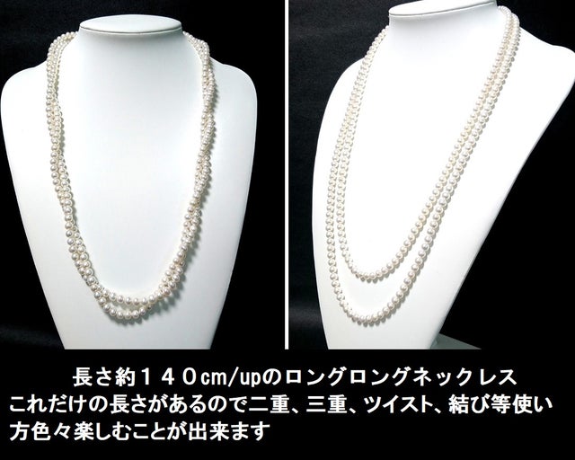 超早割 特上クラスの照りの綺麗な淡水パール超ロングネックレス・珍しい140cm