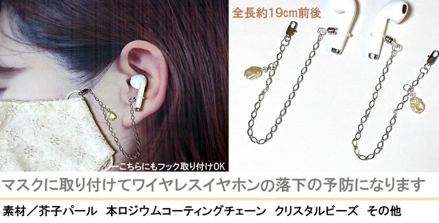 ◇マクアケ限定品お洒落な真珠と芥子入ワイヤレスイヤホン落下防止チェーン