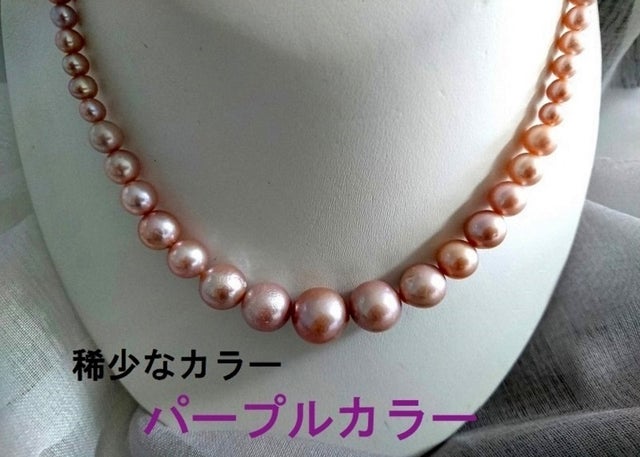 ◇稀少!お洒落でボリュームもあり、照り巻きの綺麗な天然色パープルカラーグ ネックレス7mm-13mm前後◇