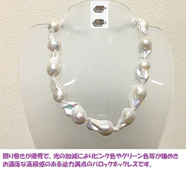 超早割 稀少照り巻き優良!大珠南洋バロックパールネックレス20mmー35mm前後