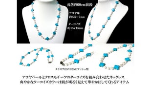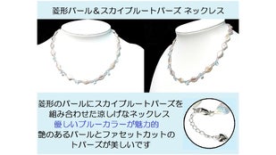 珍しい天然菱型パール&スカイブルーブルートパーズのお洒落なネックレス
