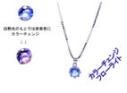 自然光のもとでは鮮やかなブルー色が、白熱光のもとでは赤紫色にカラーチェンジ