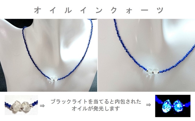 超早割 稀少な発光する石オイルインクォーツとミラーボール入ソーダライトネックレス