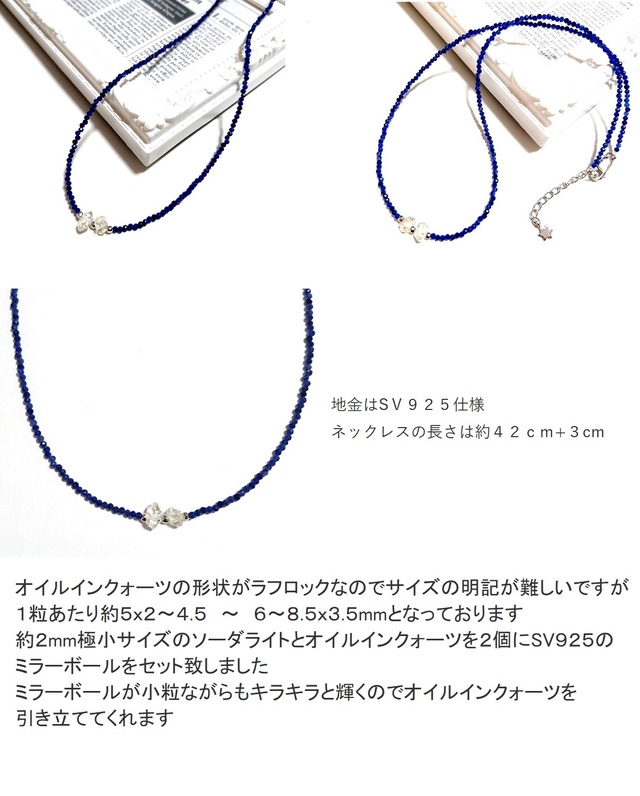 ネックレス 約2mmのソーダライトとミラーボールをセットしました。
