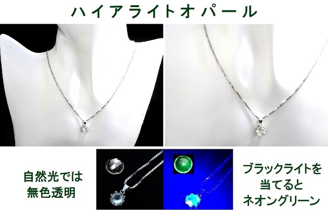 ブラックライトを当てると内包されたオイルが発光する石