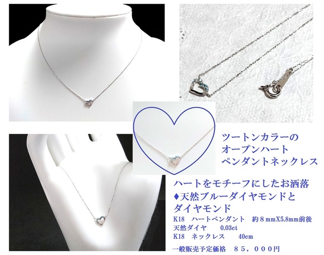 ブルーダイヤモンドハートネックレス