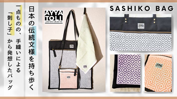 アヤトリジャパンクラフトの代表であり、バッグデザイナーの田上がハンドメイド作家が製作した刺し子の布巾を完成品を目にして、この繊細な手仕事が主役になるようなバッグを作りたいと思ったことがきっかけで、プロジェクトが始まりでした。