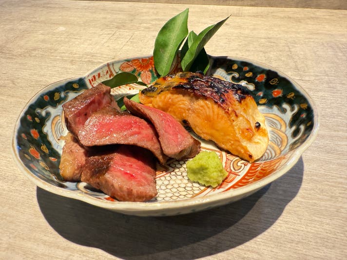 写真はトキシラズの西京漬けと松阪牛イチボのロースト(60gディナータイム4500円相当)