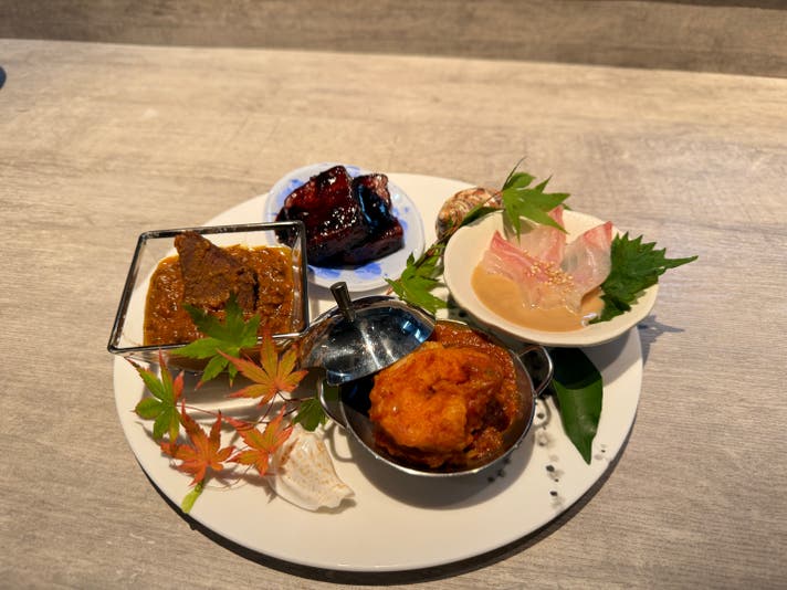 ご飯と合わせて食べたい品々〜タイの刺身ゴマだれ・アメリケーヌソースのエビチリ・牛タンカレー・スパイシーな濃厚黒酢酢豚