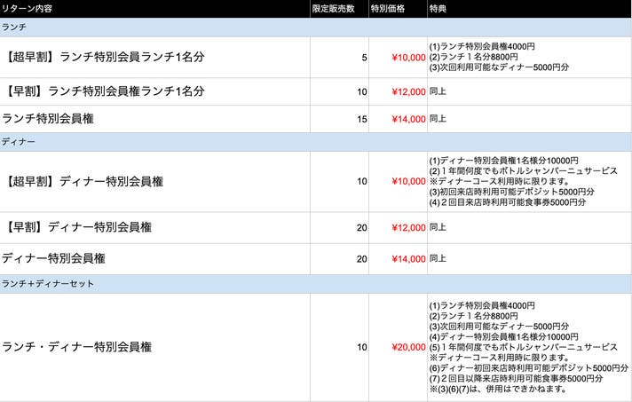 ランチ・ディナー特別会員権