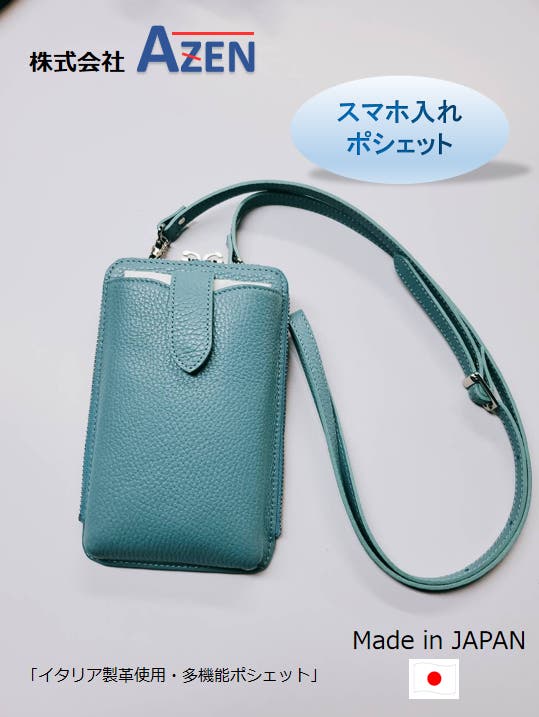 初めまして、東京都江戸川区で革小物の製造を営んでおります株式会社AZENです。主に高級ワニ革を使用したお財布や鞄などを各有名ブランド様に依頼され生産しております。スマホと財布を別々で持つという煩わしさを解消させるため、長年のノウハウを活かしてこの度、オリジナルで製造したスマホ入れポシェットを開発しました。