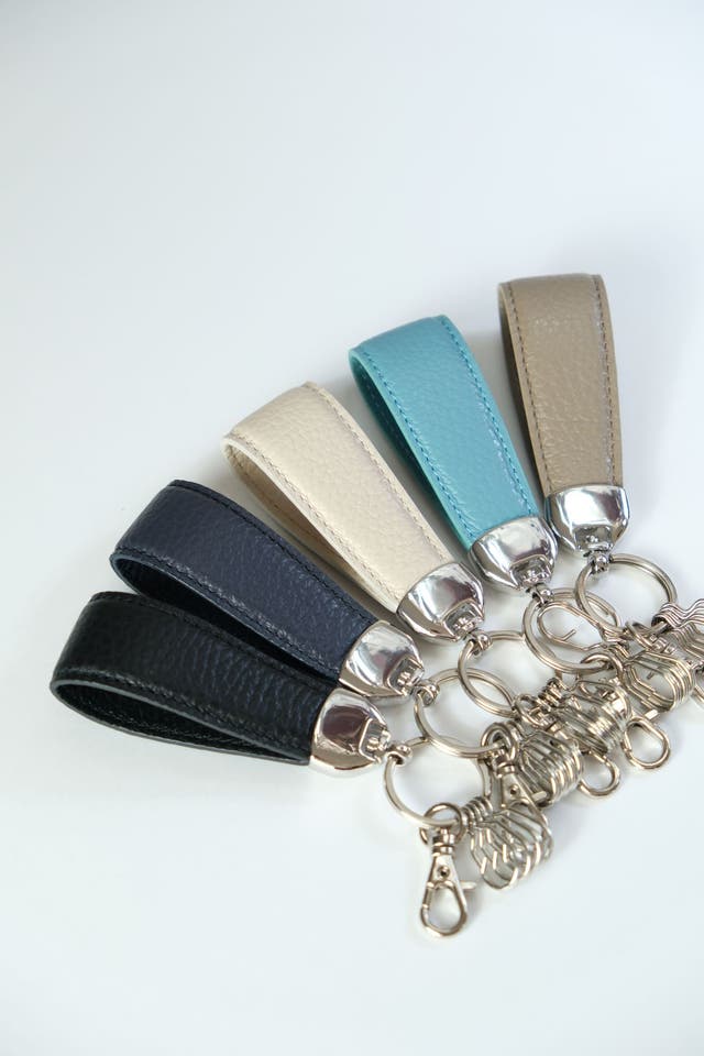 マクアケ限定で通常販売予定のイタリア本革製キーホルダーを
