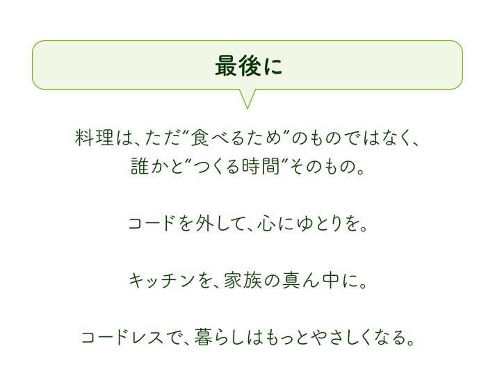 - 【自由】「狭いキッチンでも自由に調理したい」毎日の料理がより楽しく、ワクワクする体験へ
