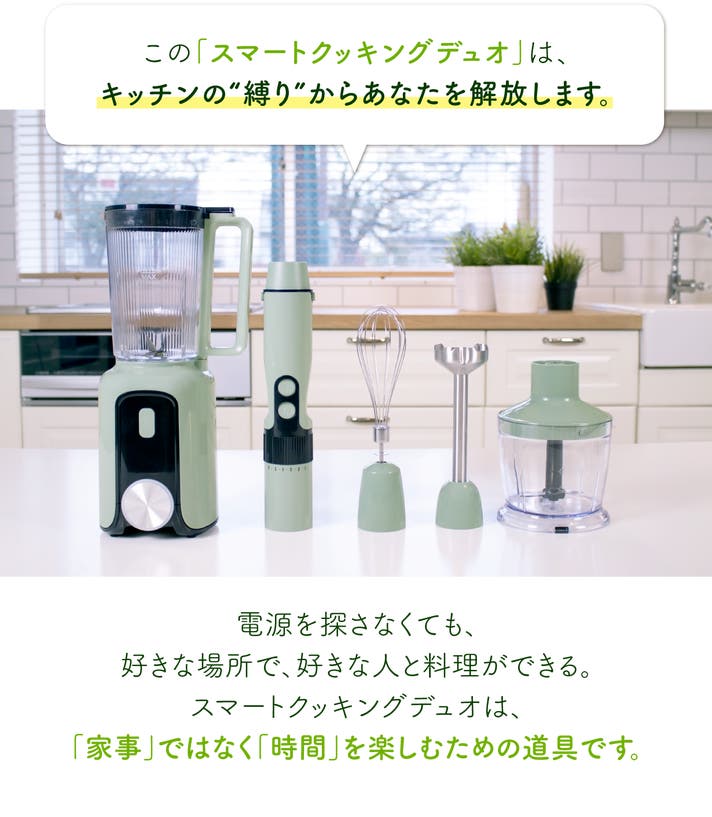 「Makuake(マクアケ)」は、実行者の想いを応援購入によって実現するアタラシイものやサービスのプラットフォームです。このページは、 プロダクトカテゴリの 「バッテリー1つで4つの調理機能。コードレスミキサー|スマートクッキングデュオ」プロジェクト詳細ページです。
