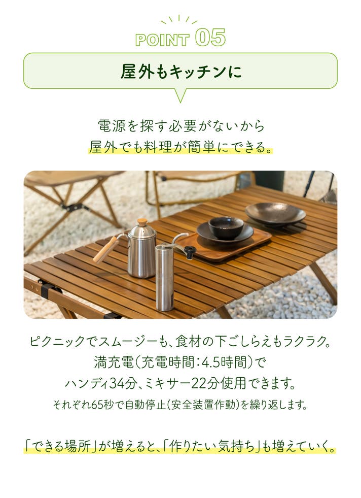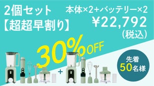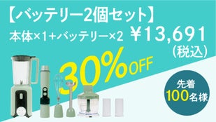 本体1セットに追加バッテリーもお得にセット!本体30%OFF、バッテリーも30%OFFで手に入る特別リターンです。長時間の調理もバッテリー切れの心配なしのセットです。