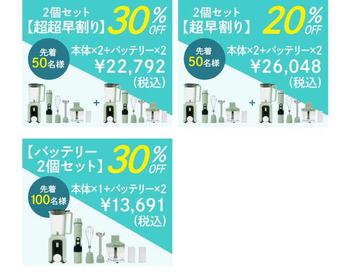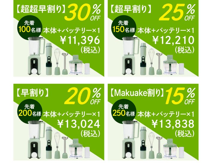 【Makuake割り】1セット+追加バッテリー30%オフ