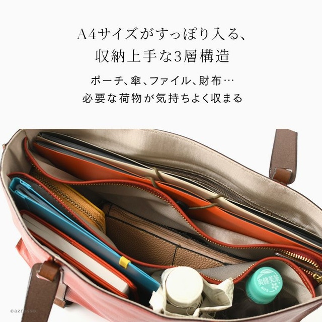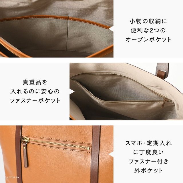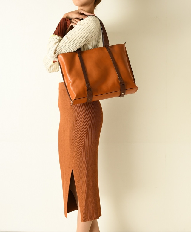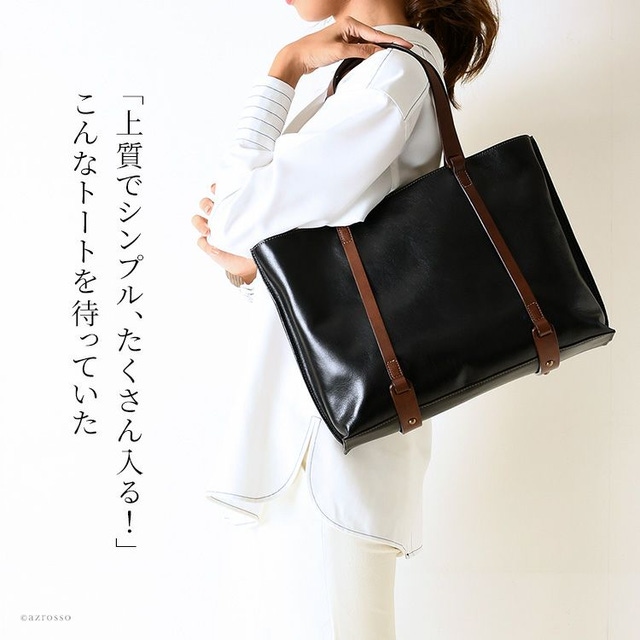 - ビジネスでもプライベートでも使える丁度いいデザインの上質レザーのトートバッグ