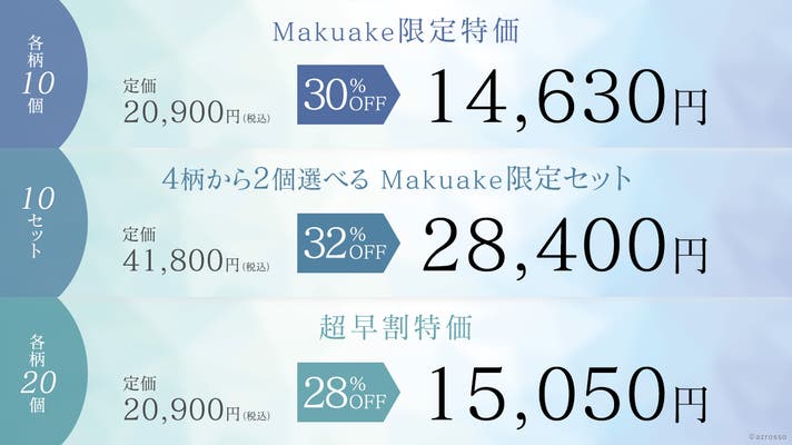 ※仕様・デザインについては、若干の変更になる場合がございます。 また、画像の色味や風合いと実際が若干異なる可能性がございます ※不良品の場合は交換させていただきますが、良品の範疇である場合には、お断りすることもございます。 ※応援購入の数が想定を上回った場合や製造工程上の都合等により出荷時期が遅れる場合がございます。 ※本文中に記載させていただいたスケジュールは、あくまでプロジェクト公開時点の予定です。応援購入の性質上、配送遅延のおそれがございます。 原則として、配送遅延に伴う応援購入のキャンセルはできませんが、リターン配送予定月から3ヵ月を超えた場合には、希望者に限りキャンセルにて対応させていただきます。