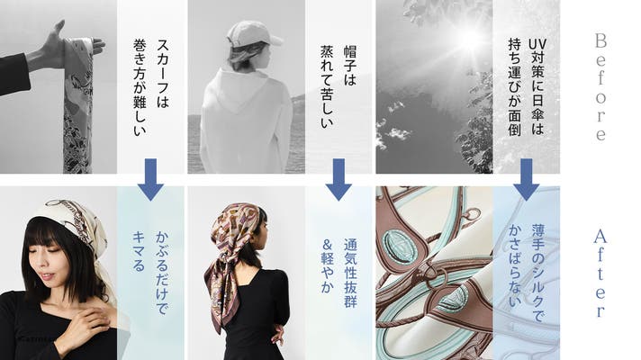 このスカーフは「美しさ」と「機能性」を両立した、かぶるケアアイテム。